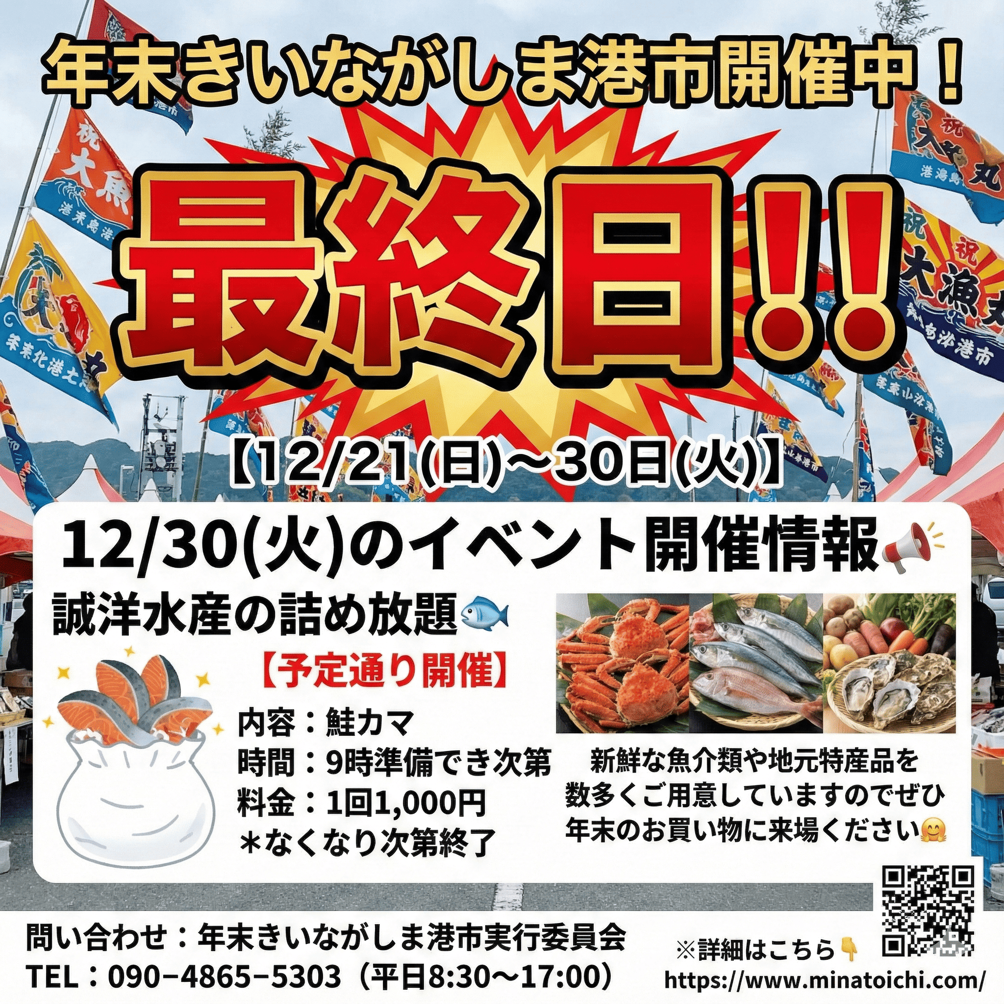最終日!! 本日12月30日(火)のイベント開催情報について