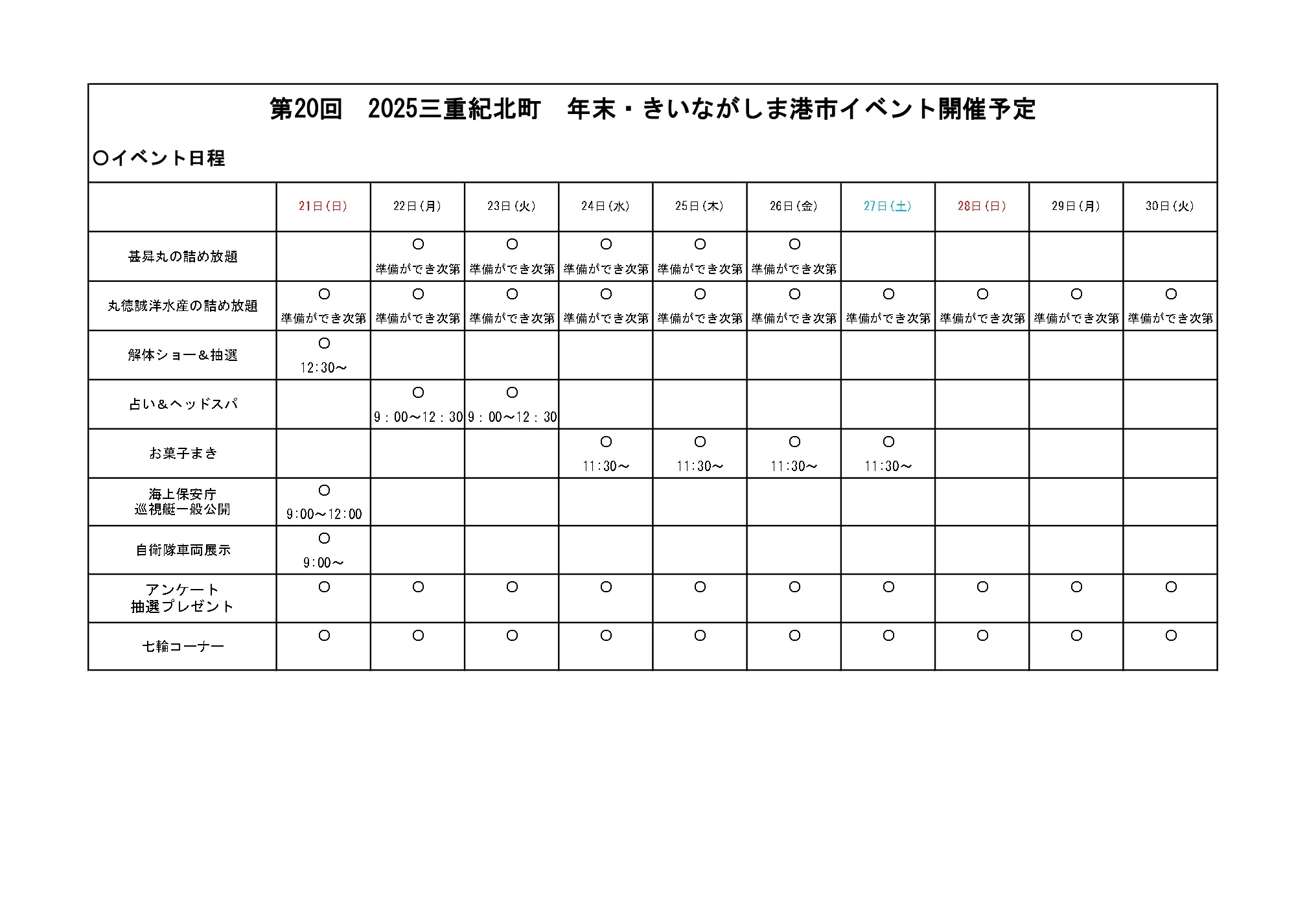 ※当日の天候や漁によって開催が中止になる場合がありますのでご了承ください。