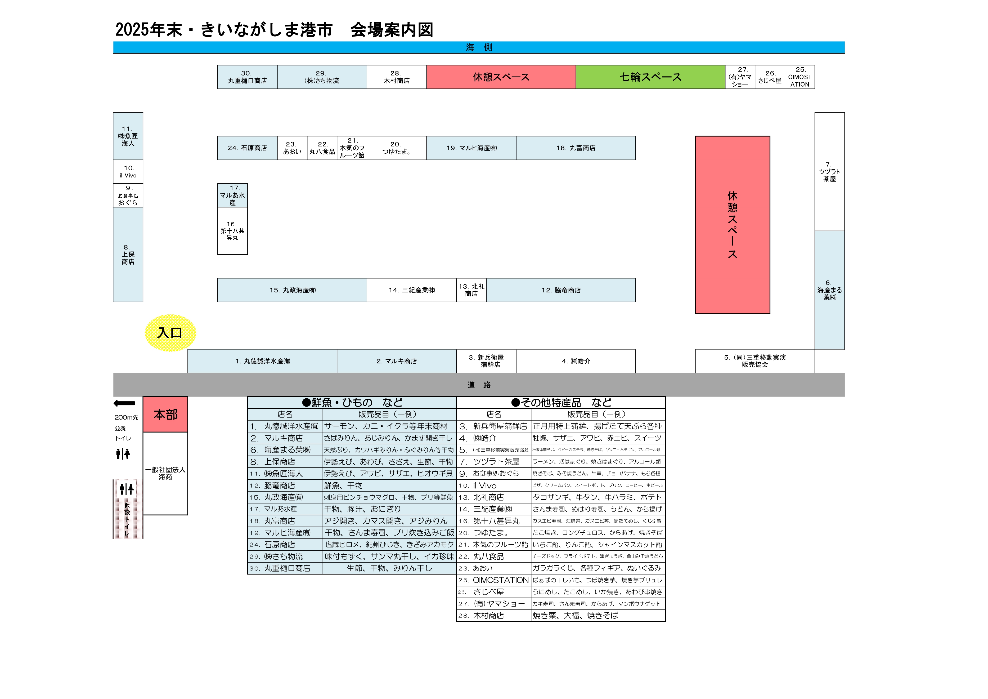 <<HOME <<開催カレンダー <<2025年末きいながしま港市 会場レイアウトについて